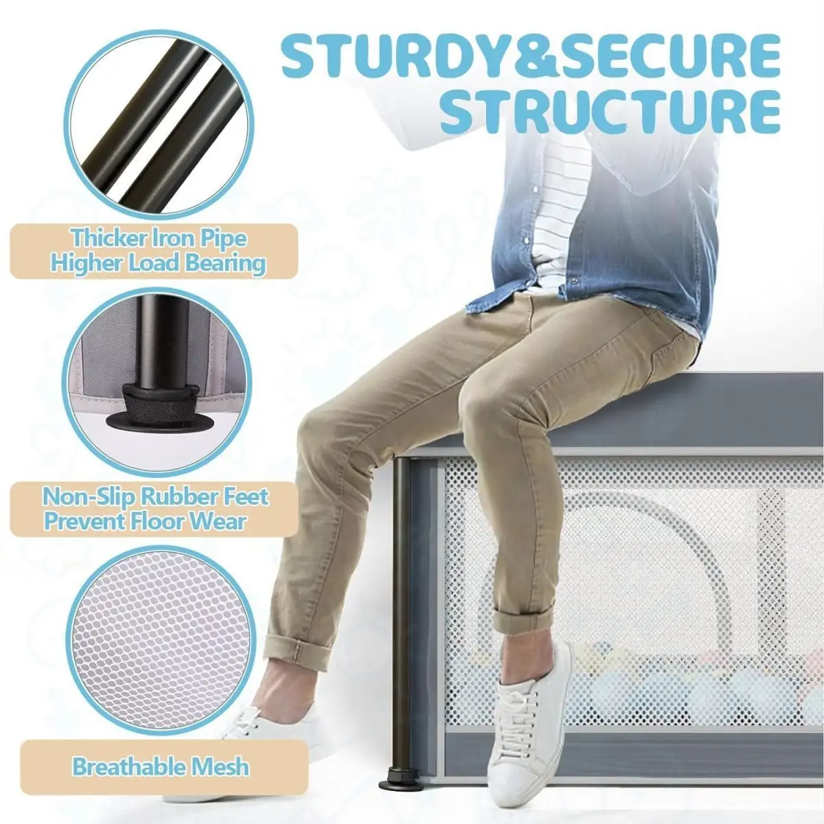 zapobiec otwieraniu jej przez niemowlę i wychodzeniu. Projekt zawiera wentylowane i oddychające siatkowe ściany, które zapobiegają uduszeniu dziecka, a jednocześnie pozwalają na dobry widok, umożliwiając Tobie i Twojemu dziecku kontakt wzrokowy w każdej chwili, dając Twojemu dziecku wystarczającą poczucie bezpieczeństwa. |